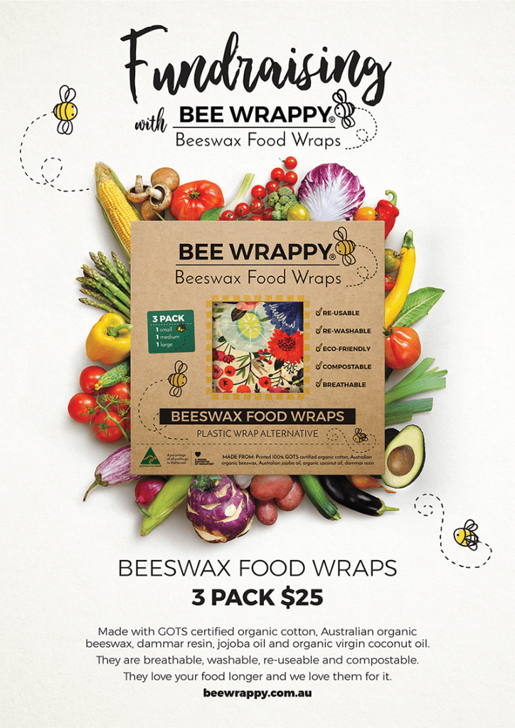 The wonderful folks at Bee Wrappy, are supporting the school by offering us Beeswax Wrap 3 Packs for $25 RRP. $11 from every pack sold comes back to the school, and we’re reducing single use plastic in our community at the same time! How good is that!
