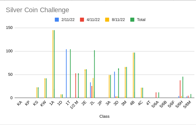 Silver Coin Challenge has been running for the past week and we are closing donations tomorrow, Thursday 10th November. Currently 1A and 3D lead the chase for the pizza lunch however it is very close and I hear a lot of late donations are coming in. Please submit any loose change to the teachers tomorrow, results will be announced Thursday night.