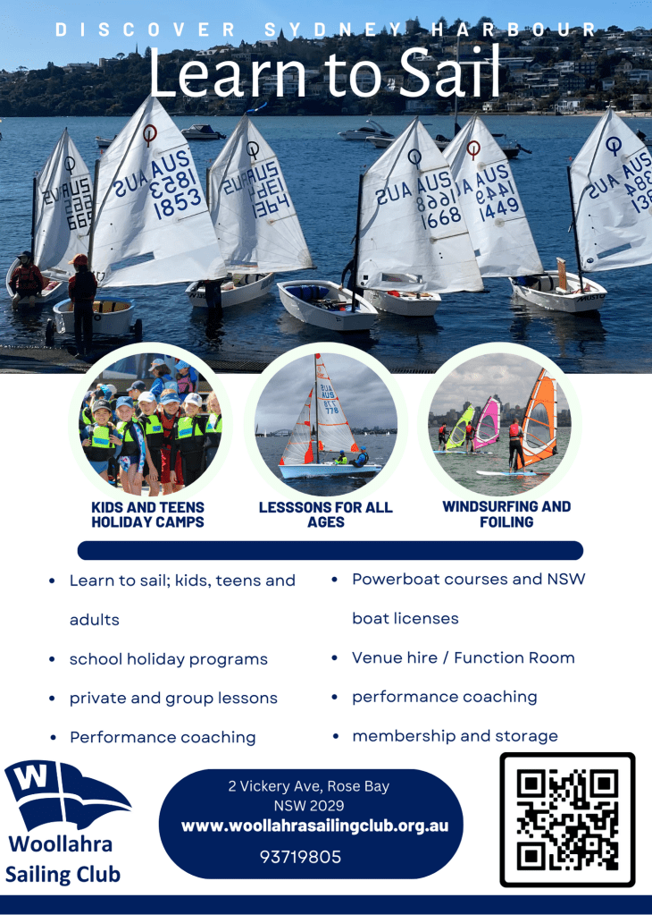 Woollahra Sailing Club – https://www.woollahrasailingclub.org.au/learn-to-sail/school-holiday-camps