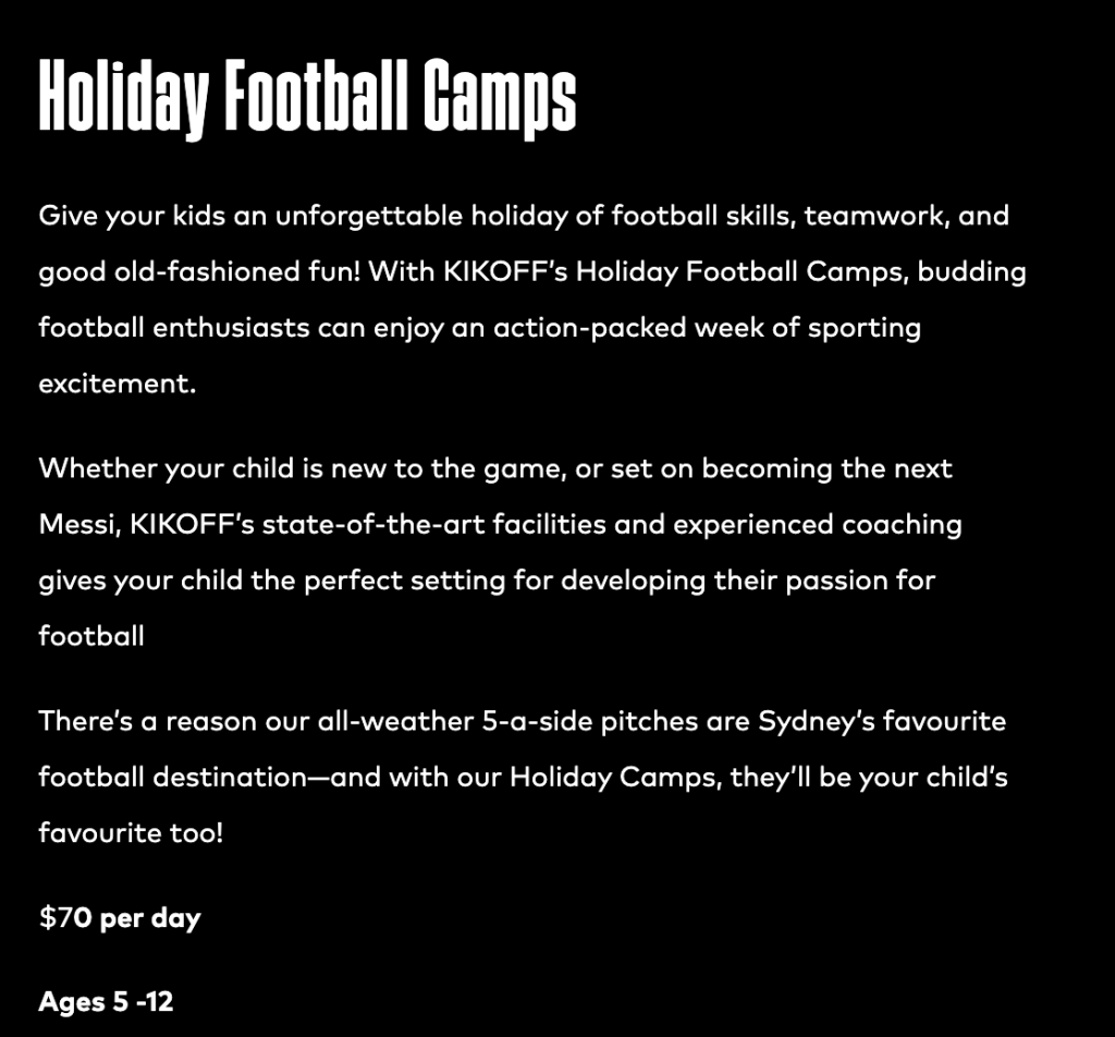 Kikoff – https://kikoff.com.au/holiday-camps/
