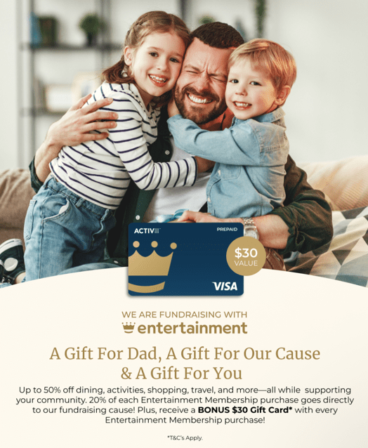 Purchase an entertainment book, and the school gets 20% of the proceeds. The Entertainment book (well App really these days) offers thousands of discounts to a wide variety of retailers from food, entertainment, travel and more.